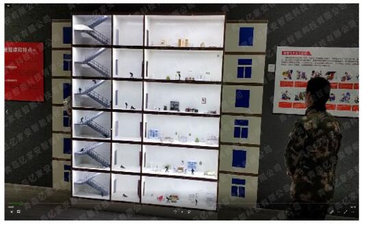樓宇煙霧擴散傳播演示系統(tǒng),通過模型的方式展示發(fā)生火災后,煙氣水平傳播和豎直傳播的規(guī)律,對比房間門和樓梯防火門開啟與關(guān)閉的情況。