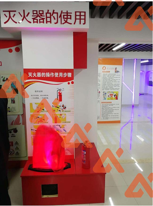 該區(qū)域有一些消防標識和一個3Dmapping模擬火災(zāi)場景,可模擬電動車違規(guī)充電引發(fā)火災(zāi)的演變過程。并安裝有模擬滅火的體驗設(shè)備,有5種常見的場景,以及6種不同品種的滅火器,通過體驗?zāi)M滅火,讓群眾學(xué)會選擇正確的滅火器來應(yīng)對不同的火災(zāi)現(xiàn)場。