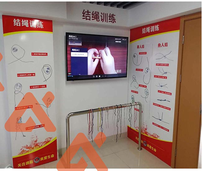 此外,該區(qū)域還配備有“消防器材認知系統(tǒng)”“逃生繩打結(jié)教學(xué)體驗系統(tǒng)”“消防VR體驗”等,可以為參觀群眾提供全面的消防安全教育。