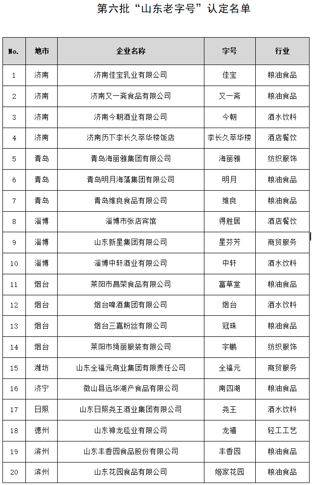 附件:第六批“山東老字號(hào)”認(rèn)定名單