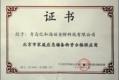經(jīng)評(píng)選,億和海麗研發(fā)生產(chǎn)的“安心”牌家庭應(yīng)急包完全符合家庭應(yīng)急物資儲(chǔ)備產(chǎn)品標(biāo)準(zhǔn)并被評(píng)為“北京市家庭應(yīng)急儲(chǔ)備供應(yīng)商”。這標(biāo)志著億和海麗“走進(jìn)百姓、做大市場(chǎng)”為下一步的應(yīng)急產(chǎn)品推廣邁出了重要一步。