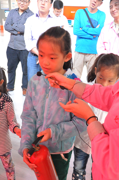 走進培訓中心,豐富的體驗點讓學生們歡呼雀躍,3D技術(shù)短片《災難警示錄》播放過程中,地震來臨,成群老鼠亂竄,觀看的孩子情不自禁抬起雙腳遠離地面;消防標志識別系統(tǒng)、火災隱患識別查找系統(tǒng)等寓學于樂小游戲,孩子們在爸爸媽媽的幫助下邊學邊玩,邊相互比賽,不亦樂乎;滅火器激發(fā)孩子動手欲望,孩子們眼睛緊緊盯著滅火器,不等解說員講解完就迫不及待的體驗;在高層樓宇緩降器體驗區(qū),劉宸鑠在爸爸的鼓勵下體驗高層緩降,成功著地后,劉宸鑠歡呼的拽著爸爸一起高層緩降,體驗完高層緩降之后,劉宸鑠爸爸告訴講解員:“剛開始心里有點擔心,現(xiàn)在孩子和我都體驗完之后,感覺很安全,孩子不但學會了高層緩降,發(fā)生火災時能保護自己,而且鍛煉了孩子的勇氣”;119火災報警系統(tǒng)區(qū)域,張笑芊一秒鐘也等不及的想要體驗,索性和旁邊同學共用一個電話體驗,兩人異口同聲的回答,引來家長陣陣笑聲。