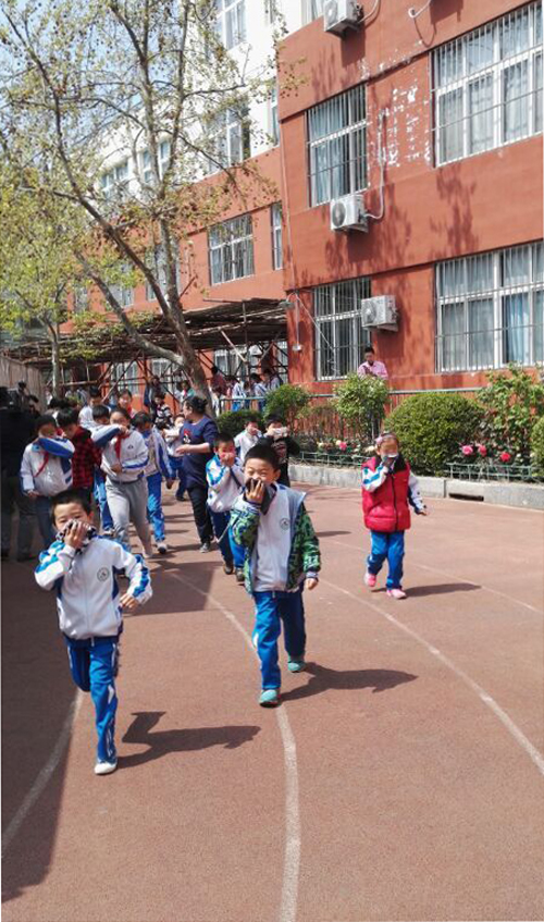 除了傳統(tǒng)的理論知識外,培訓中心應急專業(yè)講師為學生們量身定制校園防踩踏、校園火災疏散逃生演習。在逃生的過程中,除了及時、正確的撥打119報警電話外,學生們忙而不亂、活用理論知識,借助濕毛巾、消防過濾式自救呼吸器、滅火毯等自救工具緊張而有序地進行“逃生”,用時不到3分鐘,600余名師生安全“逃生”到空曠的地方。