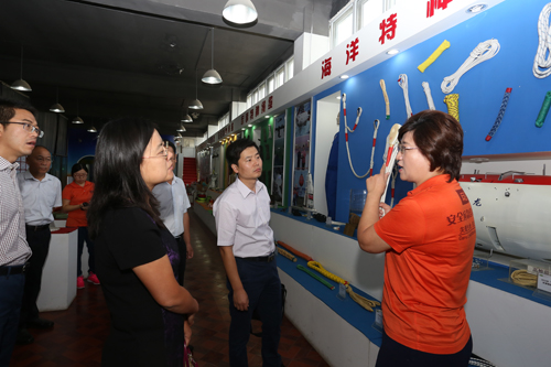 海麗雅集團(tuán)副總經(jīng)理、研發(fā)中心主任黃濤為陳黎明秘書(shū)一行匯報(bào)了企業(yè)質(zhì)量管理工作執(zhí)行情況:長(zhǎng)期以來(lái),在各級(jí)技術(shù)監(jiān)督部門的關(guān)心指導(dǎo)下,海麗雅集團(tuán)堅(jiān)持質(zhì)量強(qiáng)企,通過(guò)導(dǎo)入“卓越績(jī)效體系”、“ISO9001”、“CCC認(rèn)證”等管理體系,實(shí)行“首席質(zhì)量官制度”、“質(zhì)量基金制度”、“董事長(zhǎng)基金制度”,開(kāi)展QC小組、五小(小建議、小革新、小攻關(guān)、小發(fā)明、小創(chuàng)造)等全體職工范圍的質(zhì)量管理活動(dòng),打牢質(zhì)量基礎(chǔ),提高質(zhì)量管理水平,實(shí)現(xiàn)了質(zhì)量和經(jīng)濟(jì)效益雙提升。公司相繼為國(guó)家載人潛水器“蛟龍?zhí)?rdquo;、國(guó)家海洋科考船“大洋一號(hào)”、“科學(xué)號(hào)”配套特種繩纜,打破了國(guó)外壟斷局面。2016年8月,我國(guó)深海科考進(jìn)入“萬(wàn)米時(shí)代”,本次科考中,公司為海底探測(cè)地震儀布放配套特種繩纜,并成功獲取完整地震剖面,保護(hù)了國(guó)家科研成果。在產(chǎn)品展廳,海麗雅集團(tuán)董事長(zhǎng)張旭明為陳黎明秘書(shū)一行展示了這些海洋科考的“功臣”繩纜。此外,董事長(zhǎng)張旭明為調(diào)研領(lǐng)導(dǎo)介紹了應(yīng)急產(chǎn)品及“體驗(yàn)式”應(yīng)急安全培訓(xùn)的創(chuàng)新發(fā)展成果。