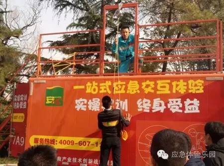 市民參加青島市應(yīng)急安全教育培訓(xùn)中心的消防體驗(yàn)項(xiàng)目現(xiàn)場