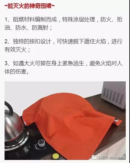 日常生活中,煎、炒、烹、炸是少不了的。在廚房忙活時,不慎引起油鍋起火也時有發(fā)生,擁有“海麗安心”多功能滅火圍裙,讓你“淡定”處理。