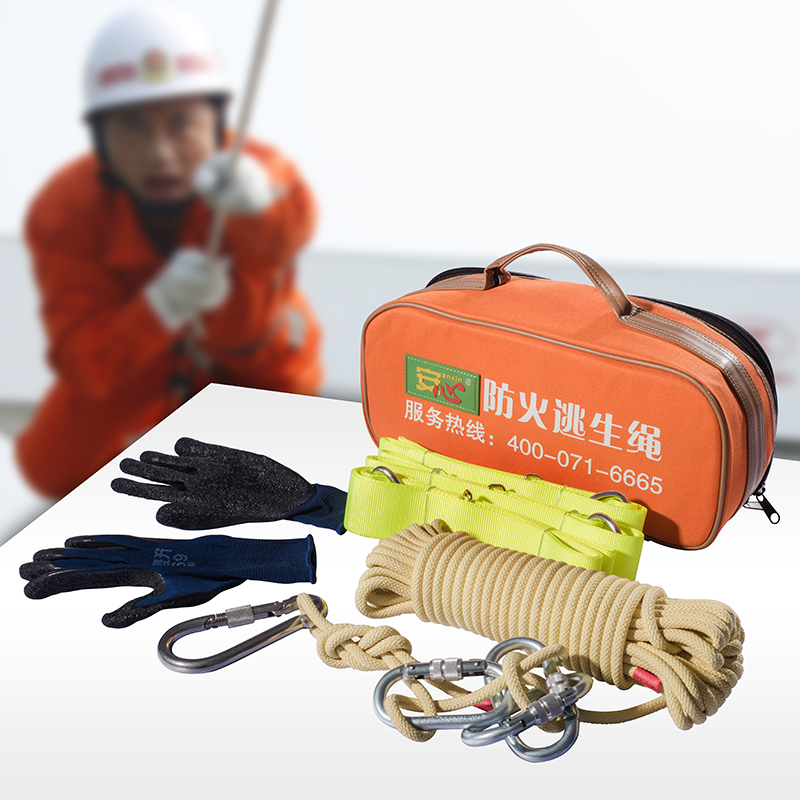 火災(zāi)高空逃生繩內(nèi)芯采用鋼絲,外包由尼龍線編織而成,下降時(shí)中途遇到火情不易燒斷,依然可以自行緩慢下降,保證了逃生安全。