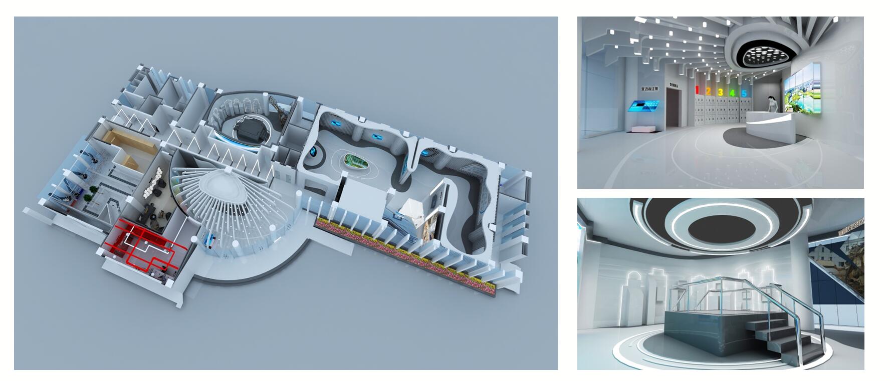 設計創(chuàng)意:根據(jù)客戶不同的場地,以及相關的設備的需求不同,提供全套的場館布局設計,效果圖設計,展板設計和工程圖紙設計。
