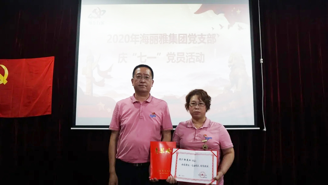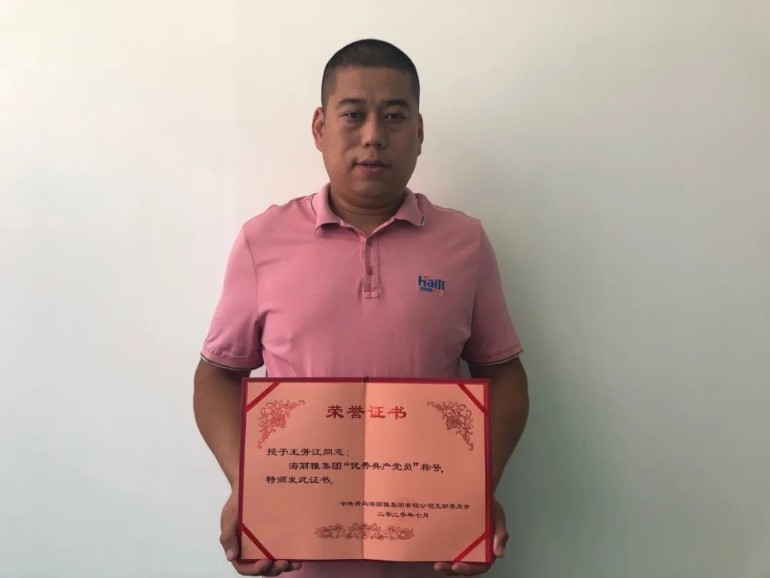 會(huì)上,還表彰了”2019年度海麗雅集團(tuán)優(yōu)秀共產(chǎn)黨員“王芳江。王芳江同志,自入黨以來(lái),始終堅(jiān)持黨的信念,日常工作中嚴(yán)格按照黨員標(biāo)準(zhǔn)要求自己:在本職工作上,加班加點(diǎn)改造生產(chǎn)裝備,為公司節(jié)約了大量成本、提高了工作效率;在疫情期間,主動(dòng)承擔(dān)黨員責(zé)任,不計(jì)個(gè)人安危,無(wú)私奉獻(xiàn),成為海麗雅集團(tuán)全體黨員的榜樣。