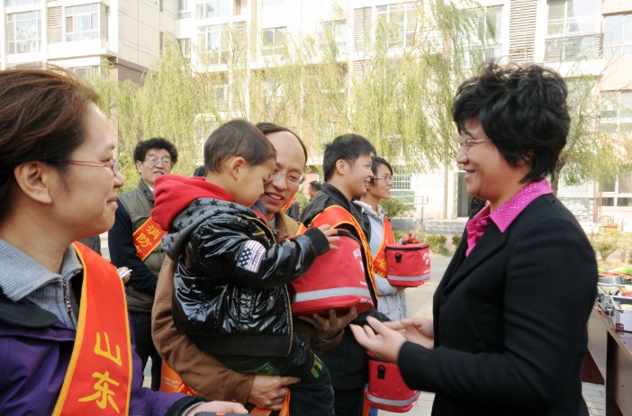 我公司董事長張旭明向11.6活動演練志愿者發(fā)放應(yīng)急產(chǎn)品